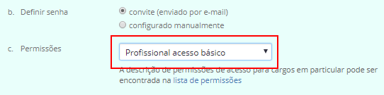 Para especificar quais funções e dados os profissionais terão acesso, eles precisam ser atribuídos a uma das seguintes funções de usuário (isso pode ser feito ao adicionar um profissional ou editar seu cadastro):