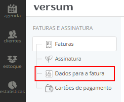 Clique em Dados para a fatura no menu do lado esquerdo: