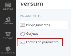Clique em Formas de pagamento no menu à esquerda: