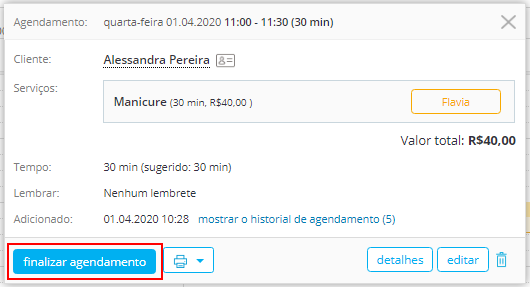 - Clique no agendamento que deseja finalizar